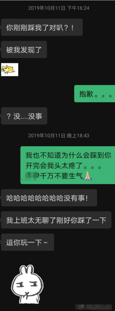 在工作上与她无交集,偶有需要报销的款项才交给她处理。某次真正感觉关系变微妙是踩了一下(她坐我对面),于是我就发现刚刚的自己那个风格立马就破功了: