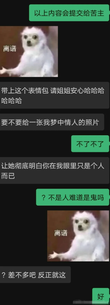 3、之前说了再好只是革命同志,而现在却要将自己在苦主面前贬低为【人】;