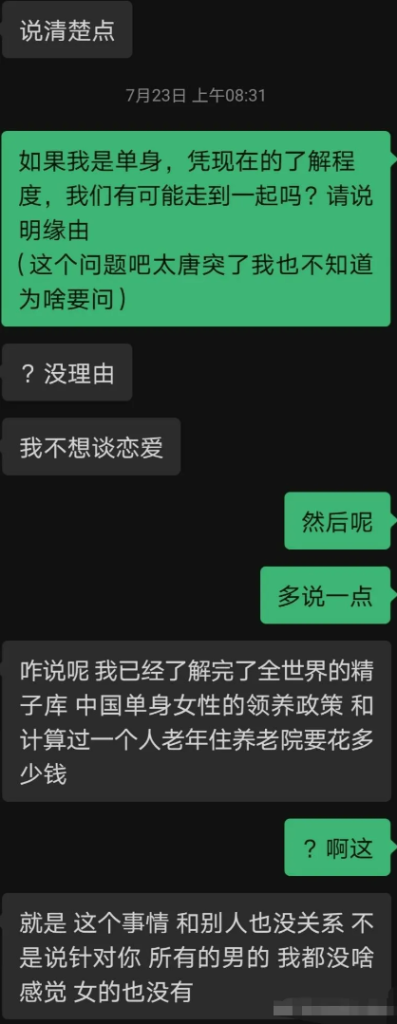 2、从信息上她对谈恋爱的考虑真的很慎重,而且很安分守己;