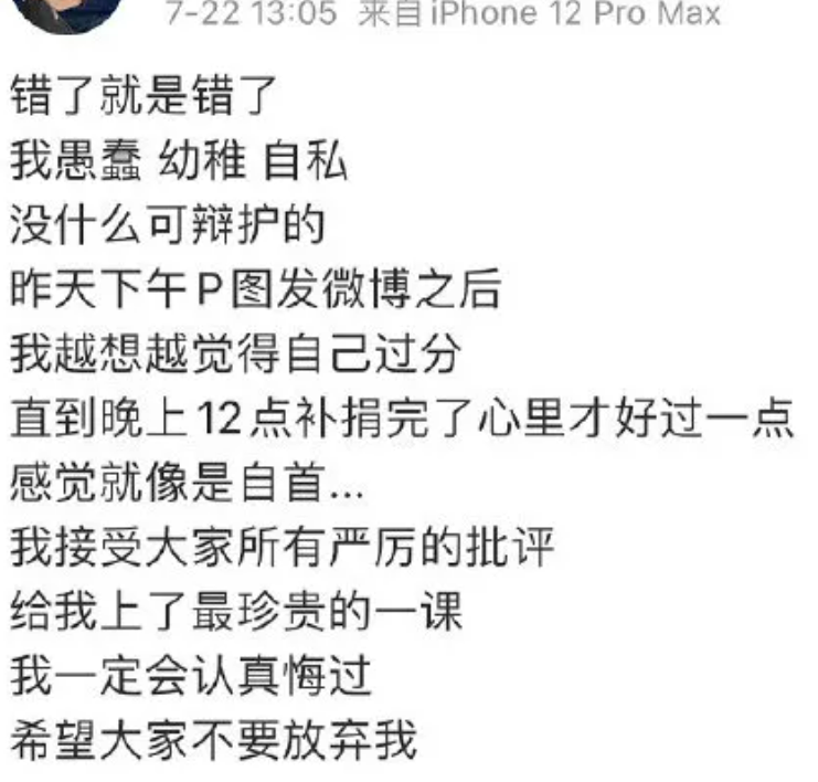 某女星公布捐款信息后,因数额太少被网友辱骂,然后她发声了: