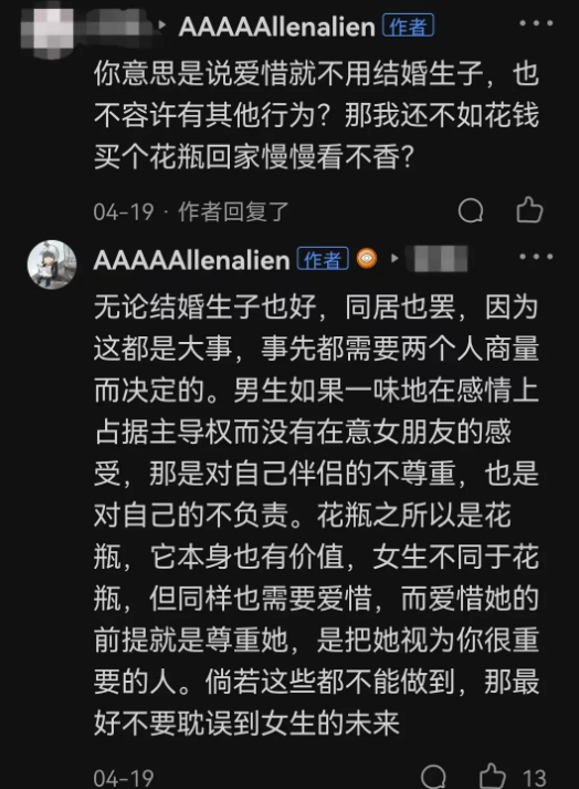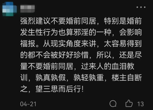 我粗算了一下,平均日增长2w阅读量,而且热度不减反增,想想还是挺懵的。 但是,在面对离谱数据和网络暴力的背后,我发现了大家共同存在一个问题,谜底在谜面上,我是去解决问题的,不是去制造问题的,这个问题的核心是去挽救一段感情而不是如何看待同居。很显然那些看客们都偏题了,他们不顾全文核心,揪着我疑似“支持婚前同居”这一说法对我进行无下限的狂轰滥炸,不过还好没有升级到问候家人的地步,否则我真的逮一个举报一个。